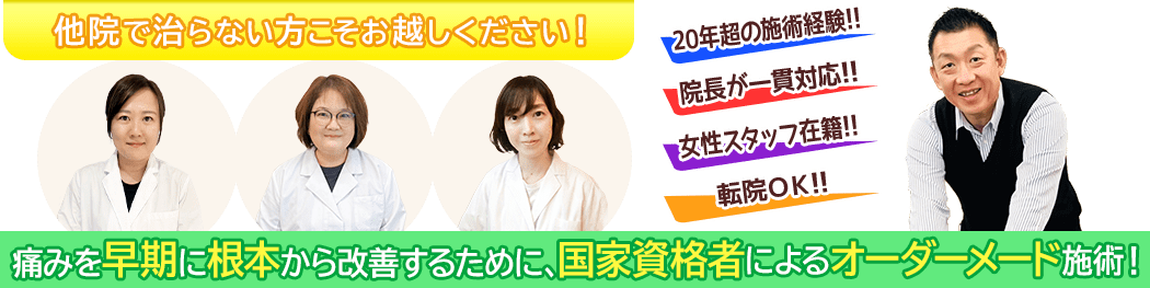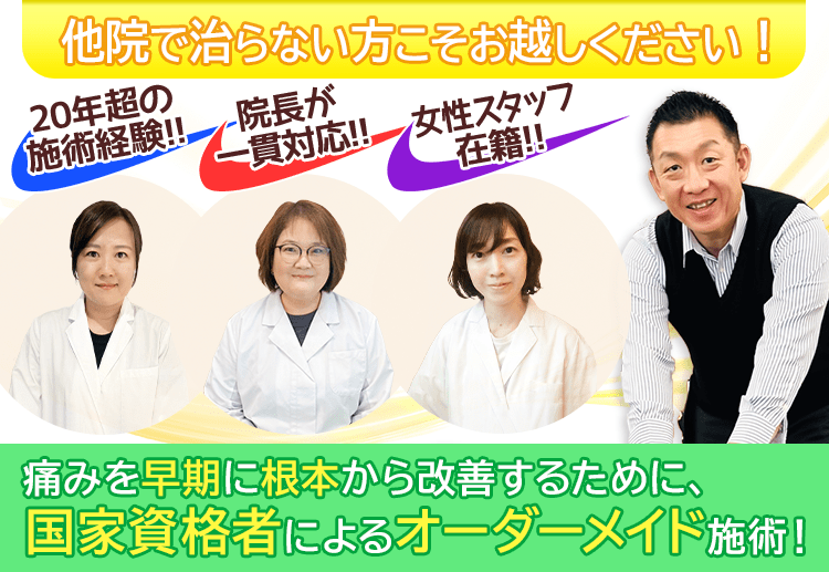 当院では、後遺症施術の経験が豊富な院長がすべての施術を一貫して担当しています。